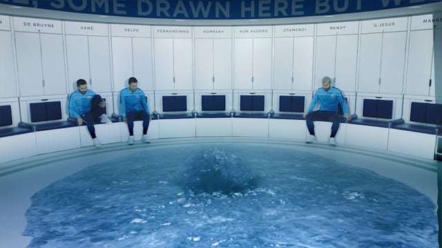 Launch campaign for the water technology company’s sponsorship of Manchester City that used projection mapping to transform the City dressing room into a dystopian, yet worryingly plausible vision of the future.